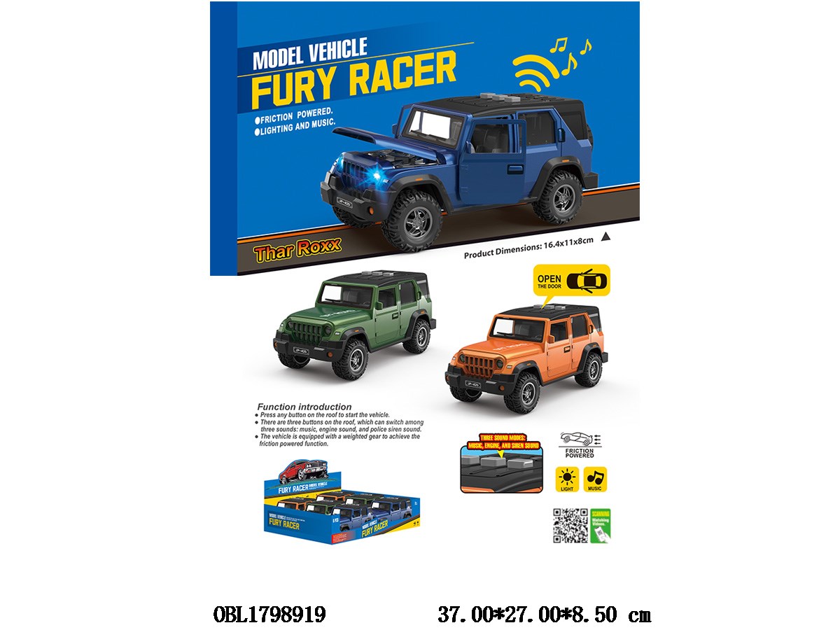 Home > F/P Car > Inertial off-road vehicle with lights and sound, capable of opening doors 2 * AAA, no electricity included, 3 colors mixed, 6 pieces per display box