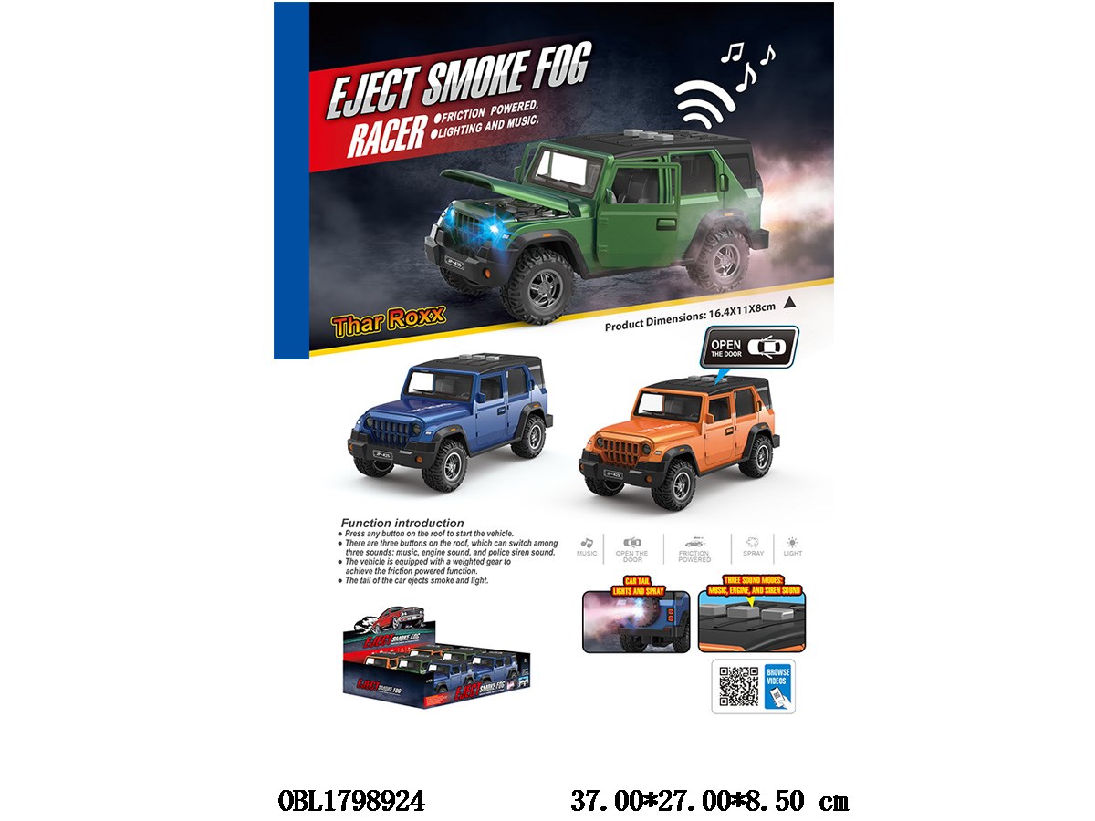 Inertia off-road vehicle with light and sound, spray, openable, 2 * AAA, non electric, 3-color mixed package, 6 pieces, one display box