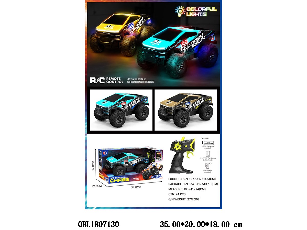 Home > R/C Car > 5-way remote control off-road vehicle with lights and USB cable, body 3.7V with power included, remote control 2 * AA without power included, 27 frequency, 2-color hybrid