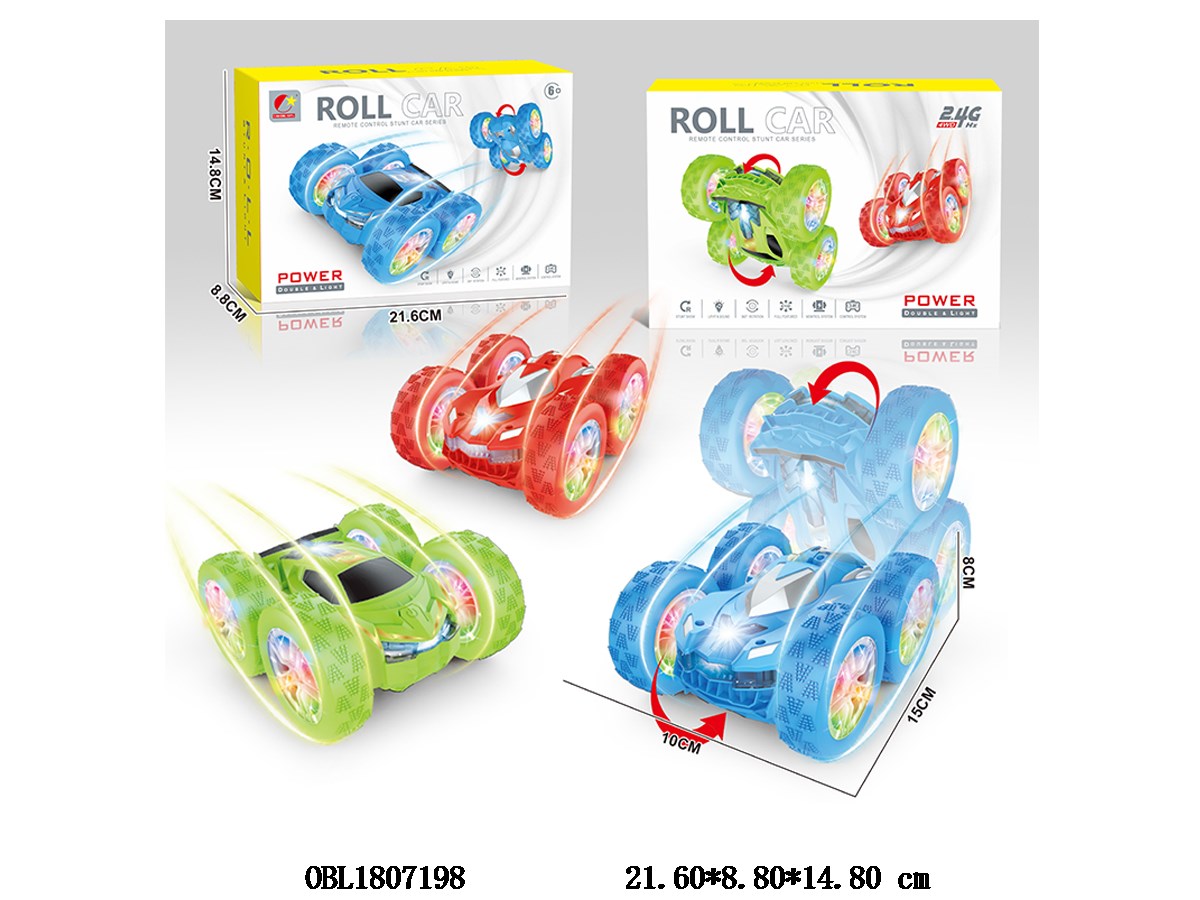 Home > R/C Car > Six way remote control rolling stunt double-sided car with lights and USB cable, body 3.7V lithium battery included remote control 2 * AA without power, 2.4G frequency, 3-color mixed design