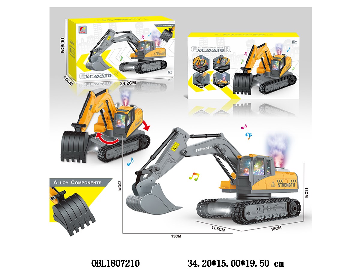 Eleven way remote control alloy excavator with light, sound, spray, USB cable, body, 3.7V lithium battery pack, electric remote controller, 2 * AA, no power pack, 2.4G frequency
