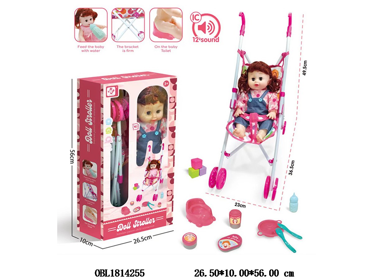 14 inch empty doll stroller set with 12 sound IC 3 * AG13 electric package main body clothes 1 style 1 color