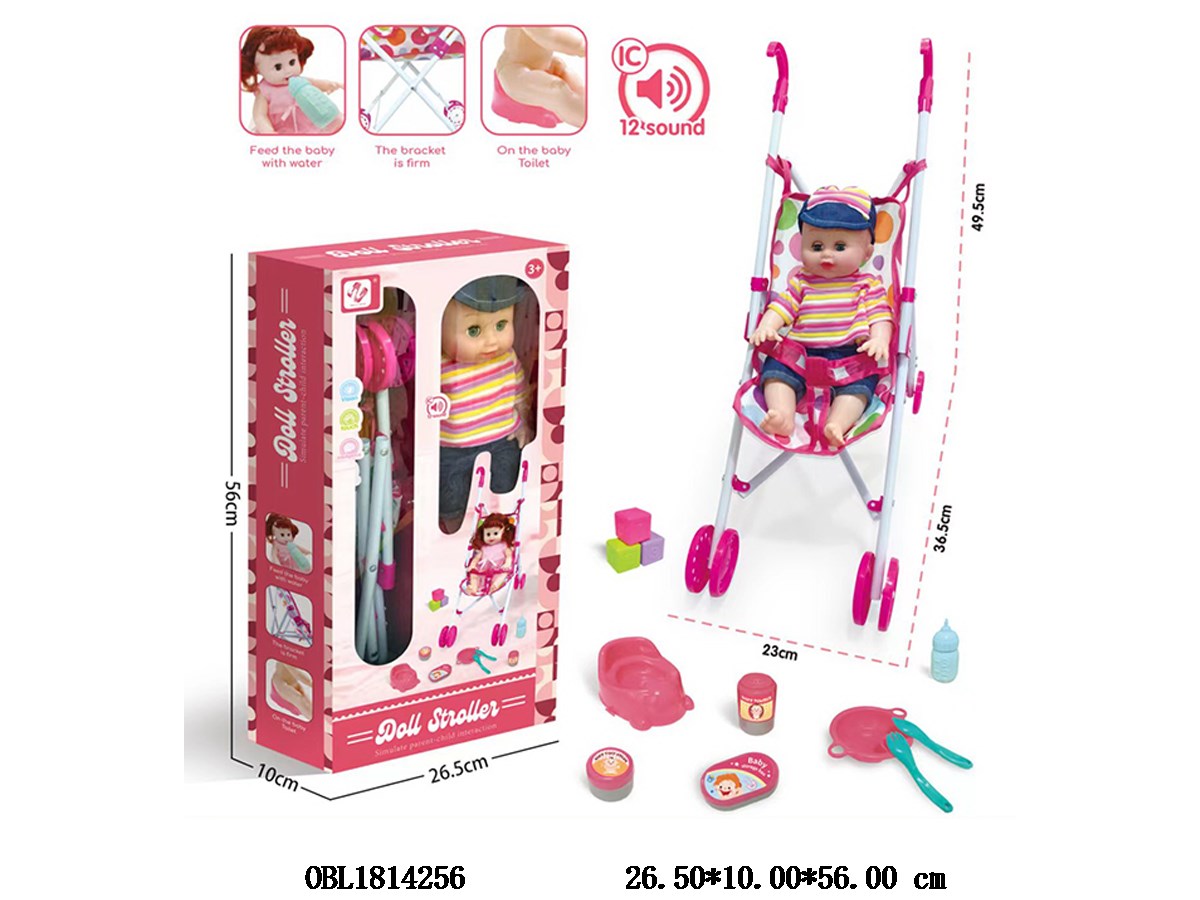14 inch empty doll stroller set with 12 sound IC 3 * AG13 electric package main body clothes 1 style 1 color