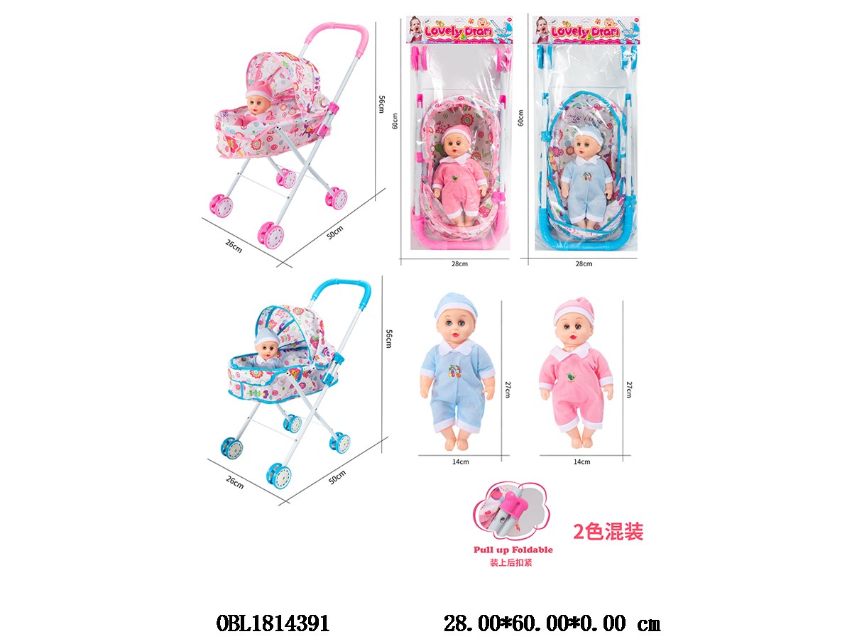 Home > Baby Stroller > Doll iron cart with 12 inch empty doll in 2 colors mixed