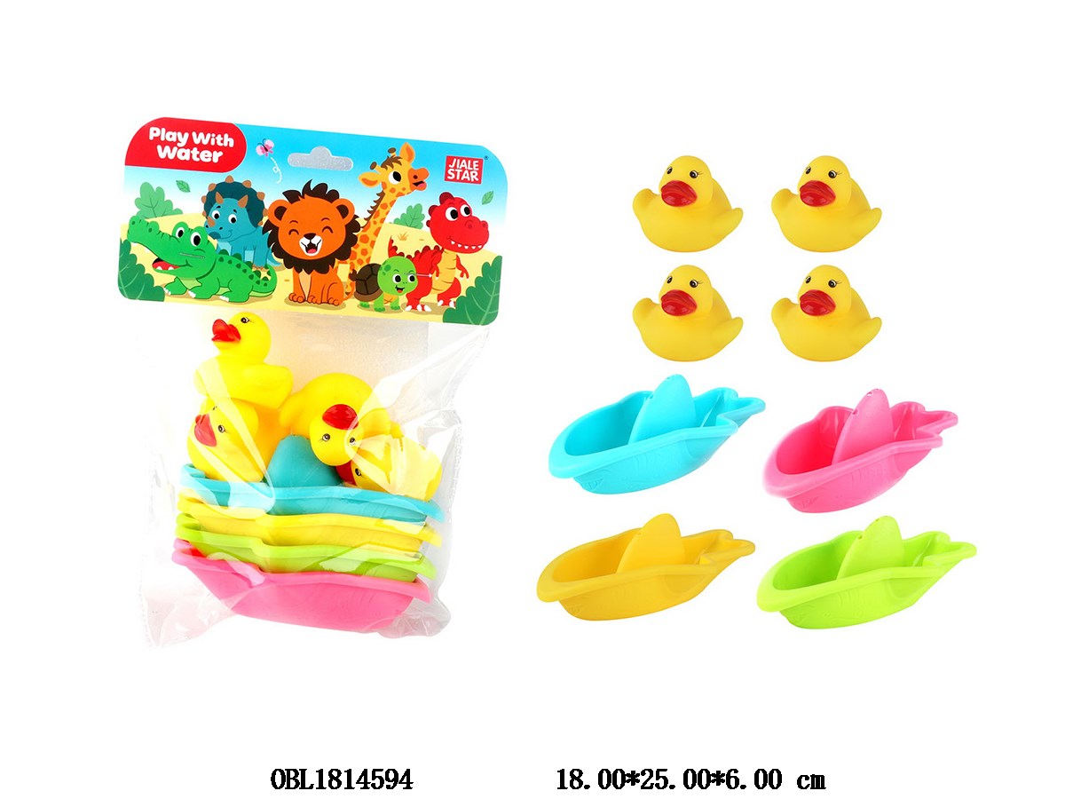 Home > Soft Plastic Animals > 4-pack adhesive duck stacking boat set