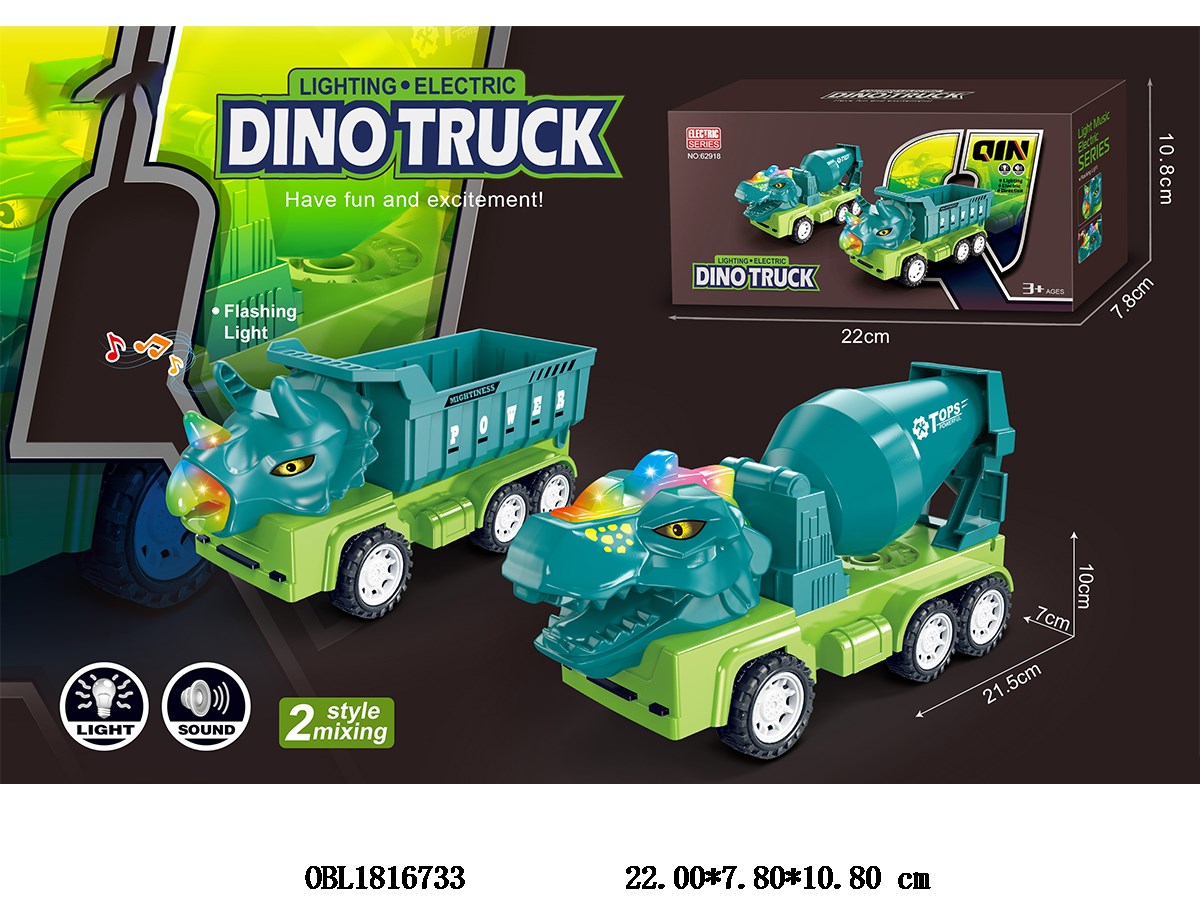 Electric dinosaur car with lights, music, 3 * AA, no electricity included, 2 mixed models