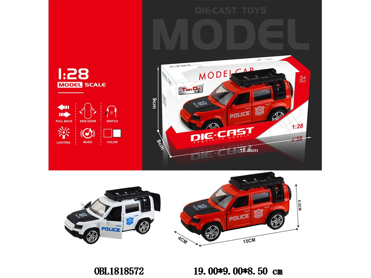 Home > Die-Cast Car > 1: 28 simulation alloy regenerative police car with lights, music, 3 * AG3, electric package, 2 mixed models, can open the door