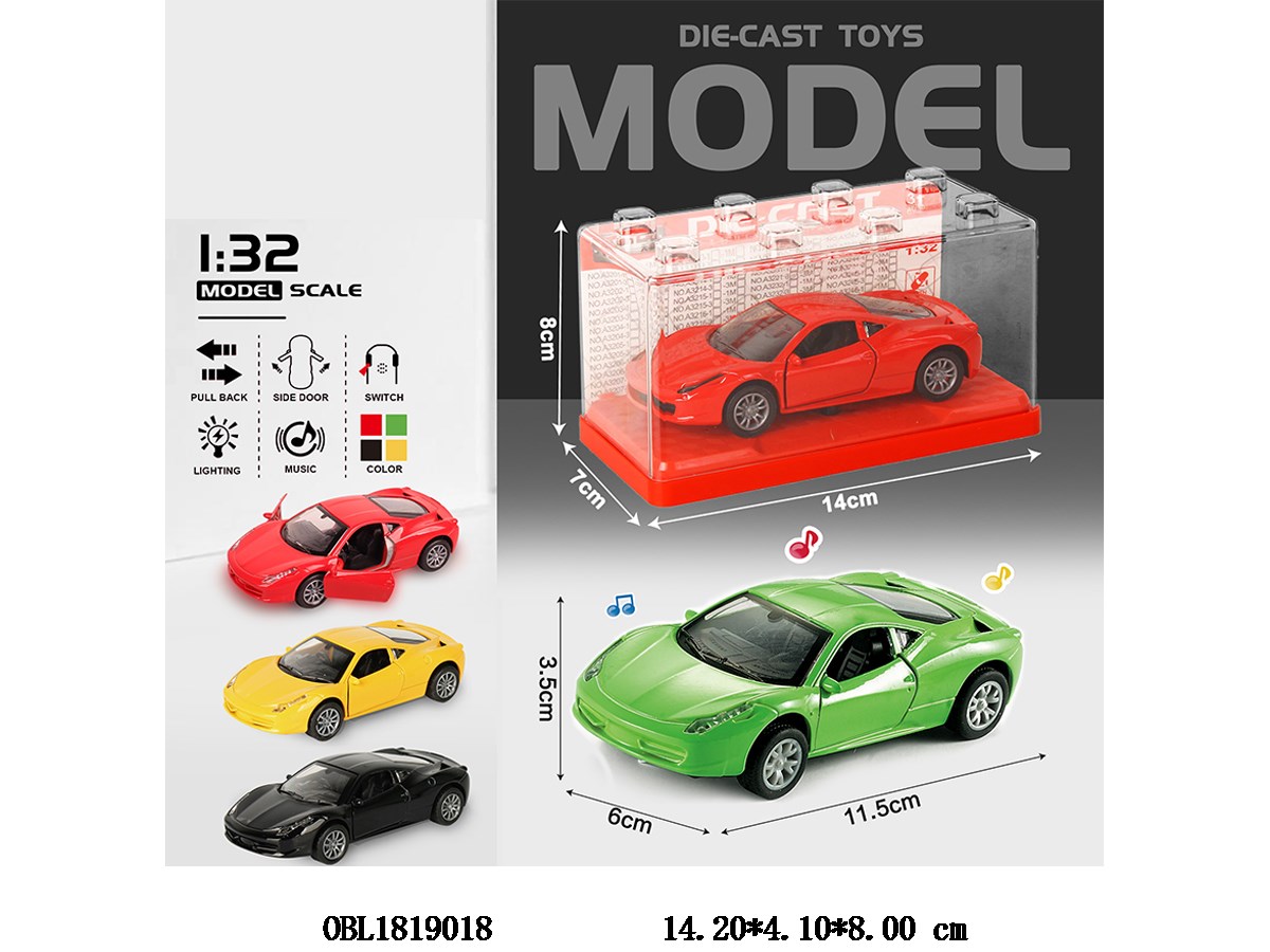 1: 32 simulation alloy regenerative car with lighting and music, capable of opening doors, 3 * AG3, electric package, 4-color mixed design