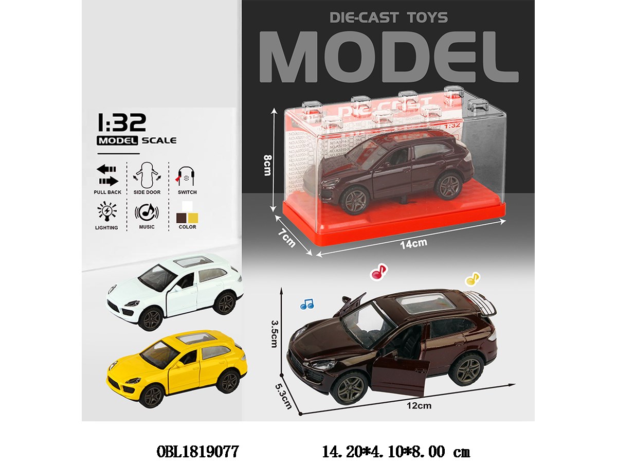 1: 32 simulation alloy regenerative car with lighting and music, capable of opening doors, 3 * AG3, electric package, 3 color mixed design