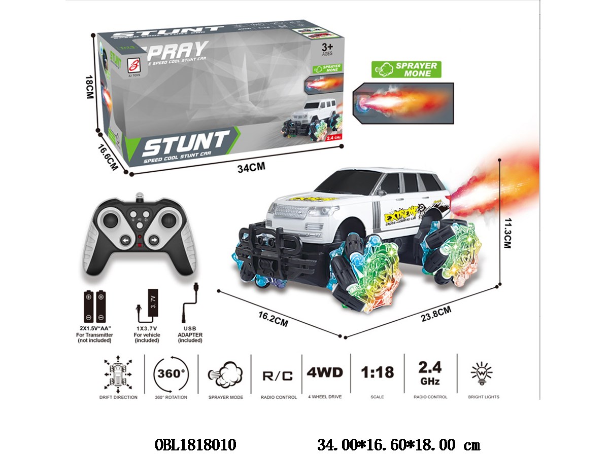Home > R/C Car > Jiutong remote control vehicle with light spray, USB cable, body 3.7V battery pack, electric remote control, 2 * AA, no power pack, 2.4G frequency, white/red mixed