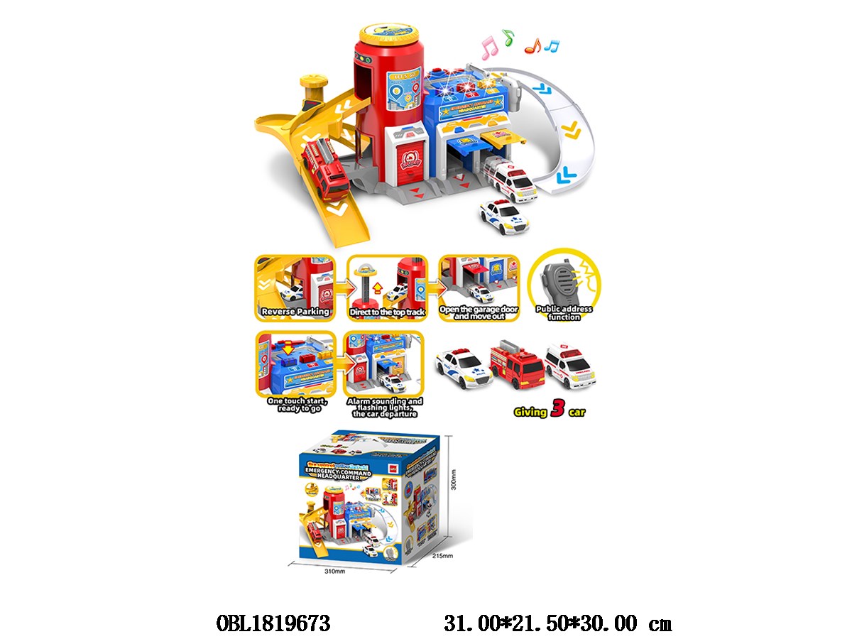Home > DIY Parking Lot > Emergency Command Headquarters Parking Lot Package with Lighting, Music, 3 * AA, No Electricity, 3 Sliding Cars