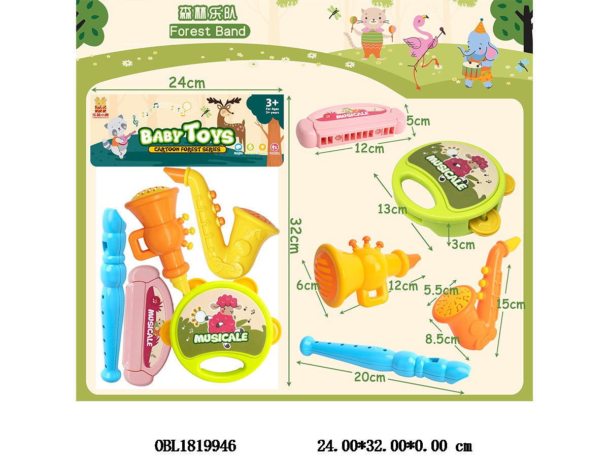 Home > Musical Instruments Suit > Instrument combination: horn, bell, drum, saxophone, flute, harmonica