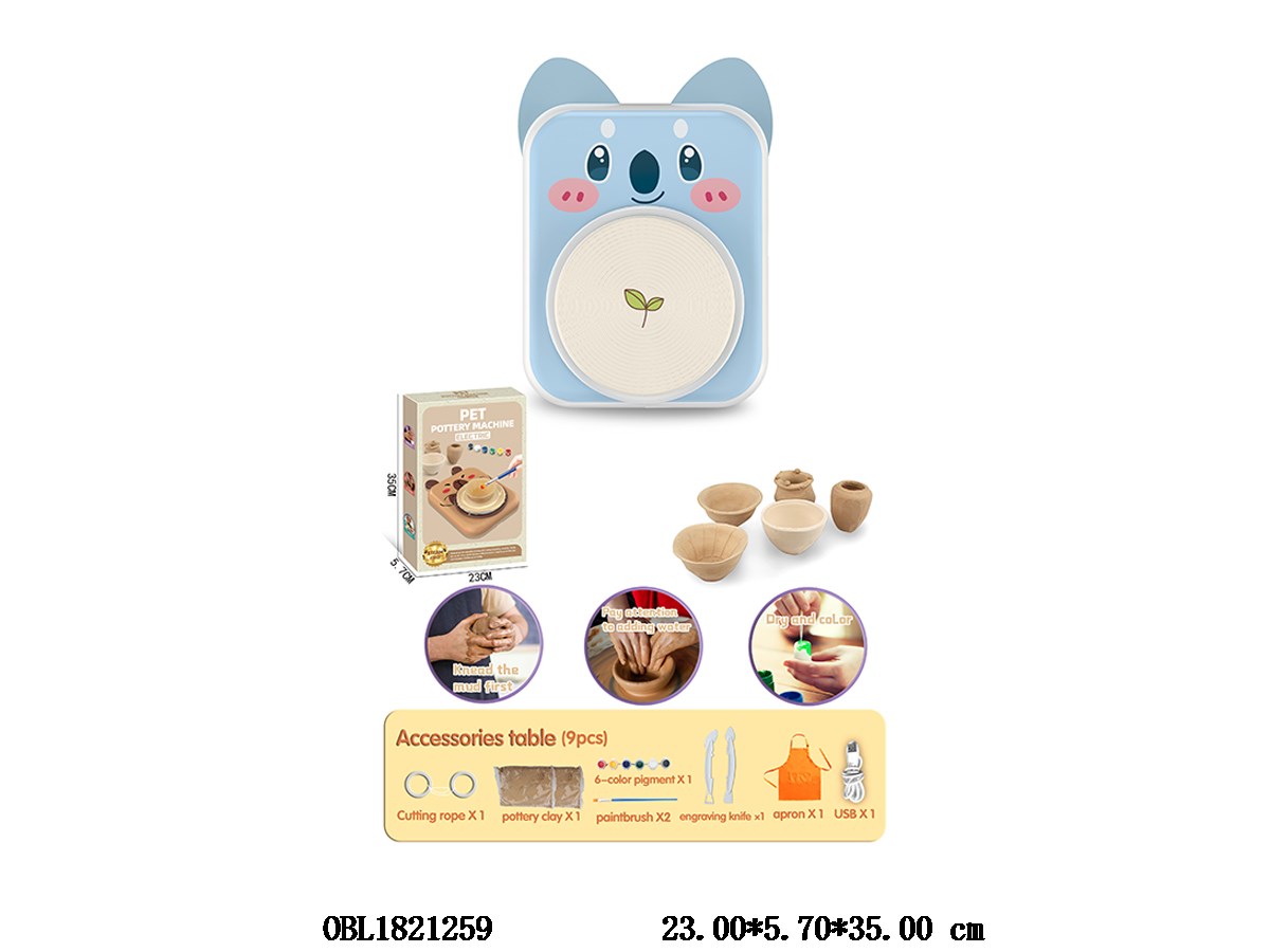Home > Other Intellectual Games > Cute Pet Pottery Machine Set with USB Plug in Bag, Electric Apron, Random Color
