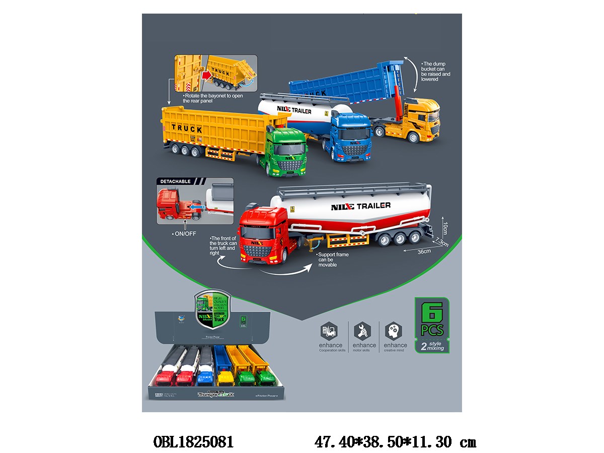 Simulate inertia transportation semi-trailer truck with 6 units in a display box