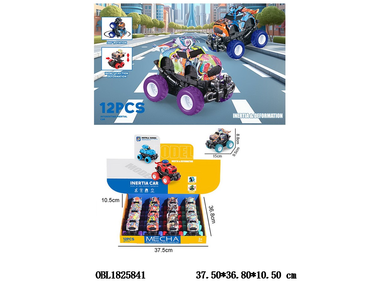 Inertial collision deformation car 4-color mixed packaging, 12 pieces per display box