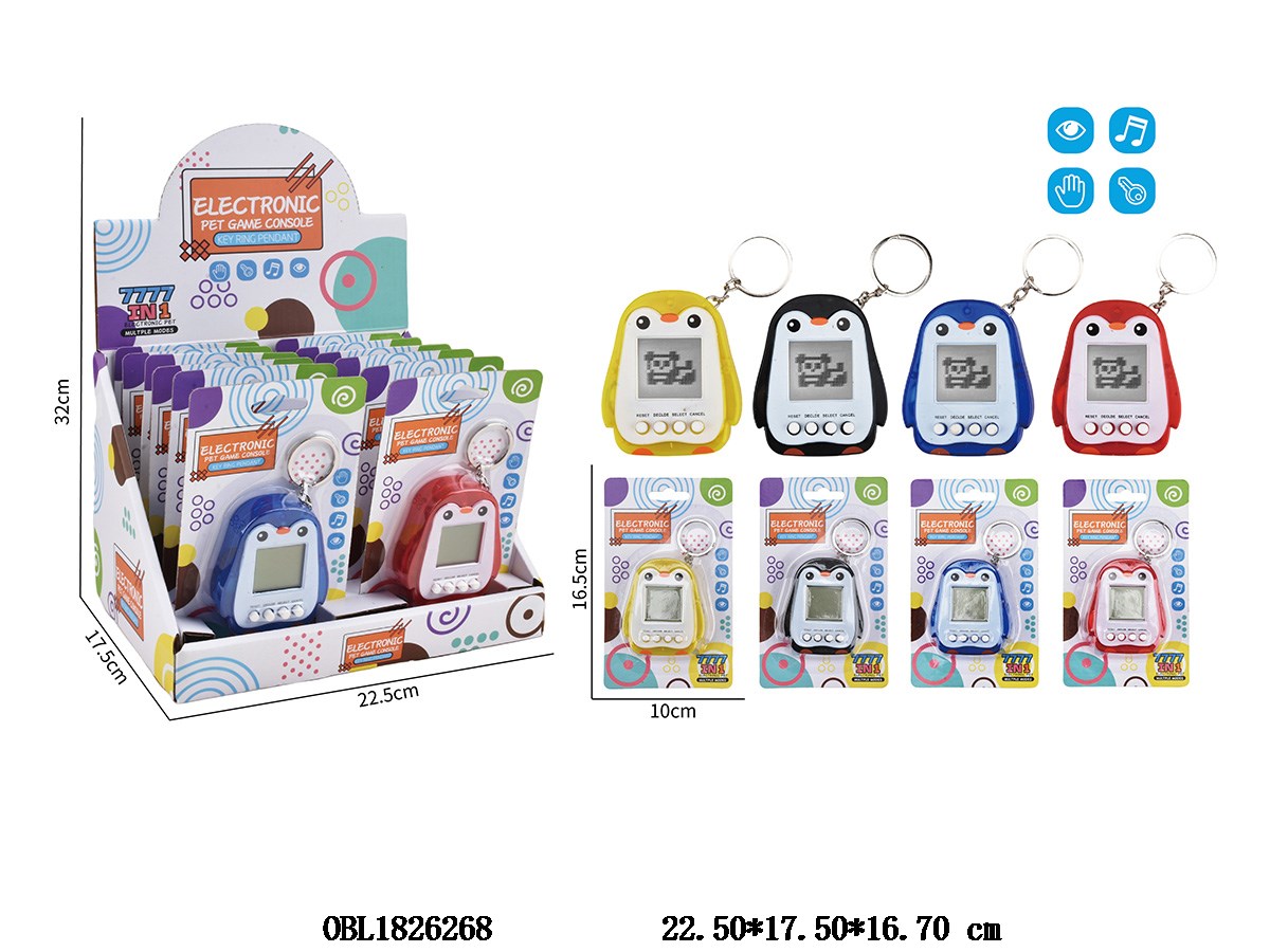 Pet game console with keychain 2 * AAA, no electricity included, 12 board pack, 1 display box, 4 color mixed packaging