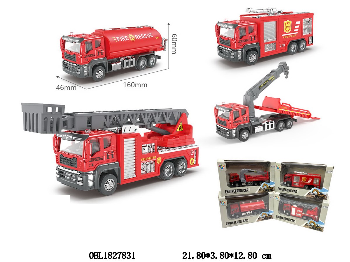 Home > Die-Cast Car > Four mixed models of alloy inertia fire trucks