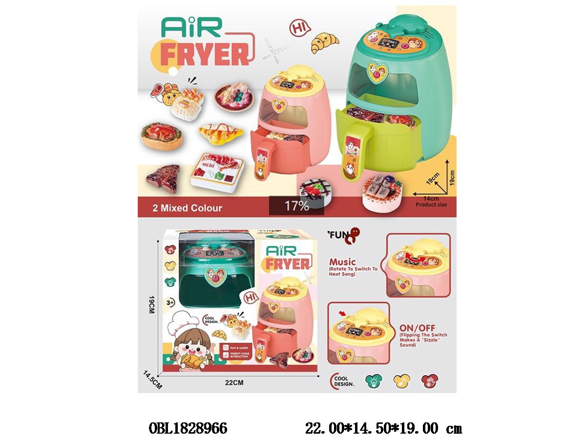 Air fryer set with lighting, music, 3 * AA, no electricity, 2 colors mixed