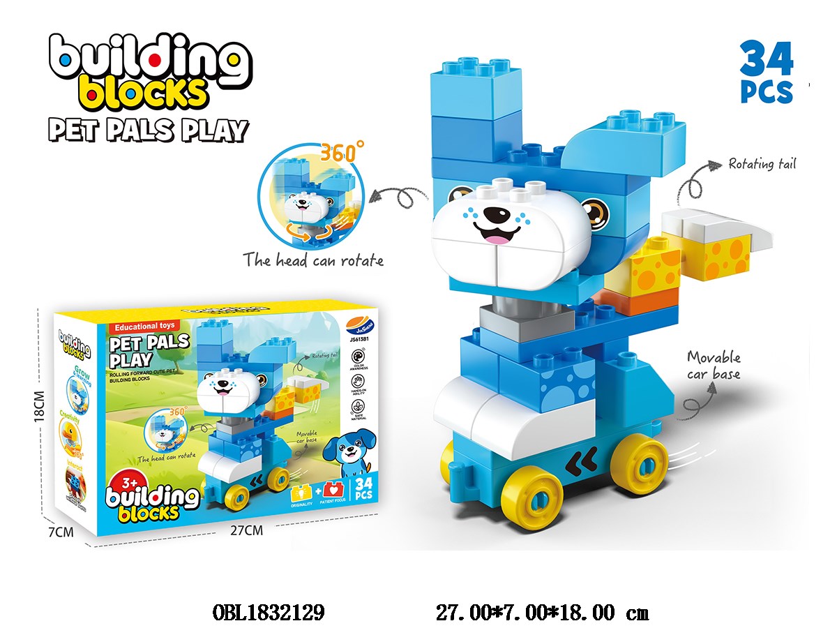 Home > Common Building Blocks > Puzzle building blocks, cute pets, spinning puppies, sliding bikes, 34PCS