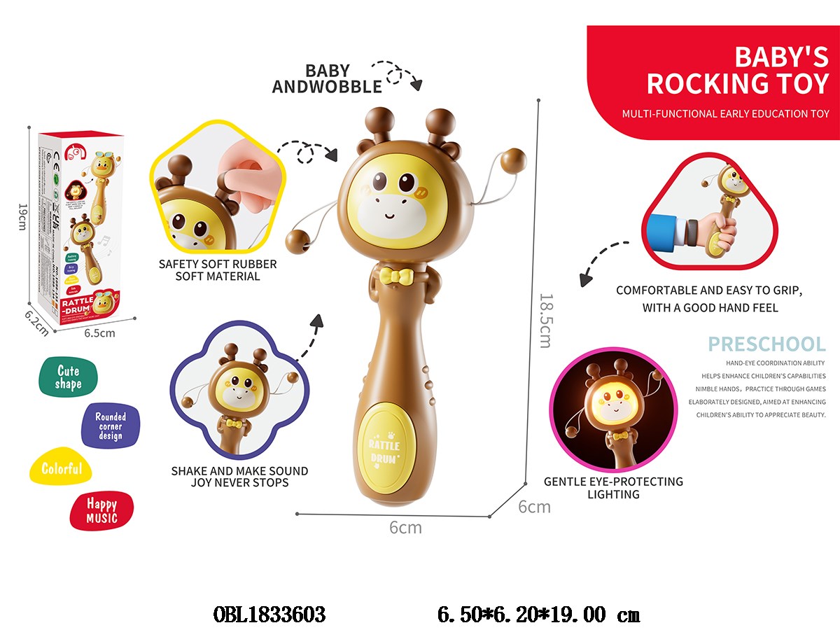 Home > Wave Drum > Giraffe tambourine with light music 2 * AAA, no electricity included