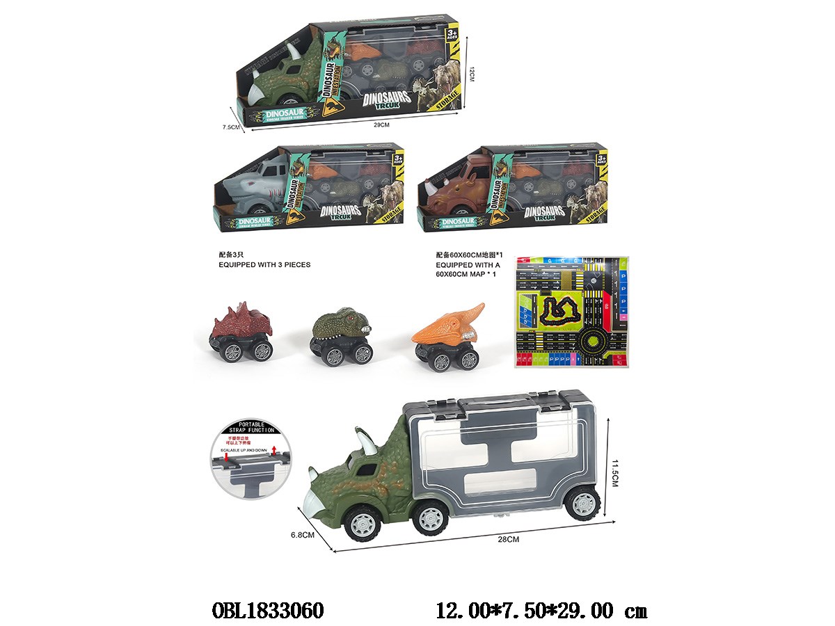 Home > Free Wheel Car > Sliding dinosaur car with 3 sliding cars, 1 road map, 2 mixed models