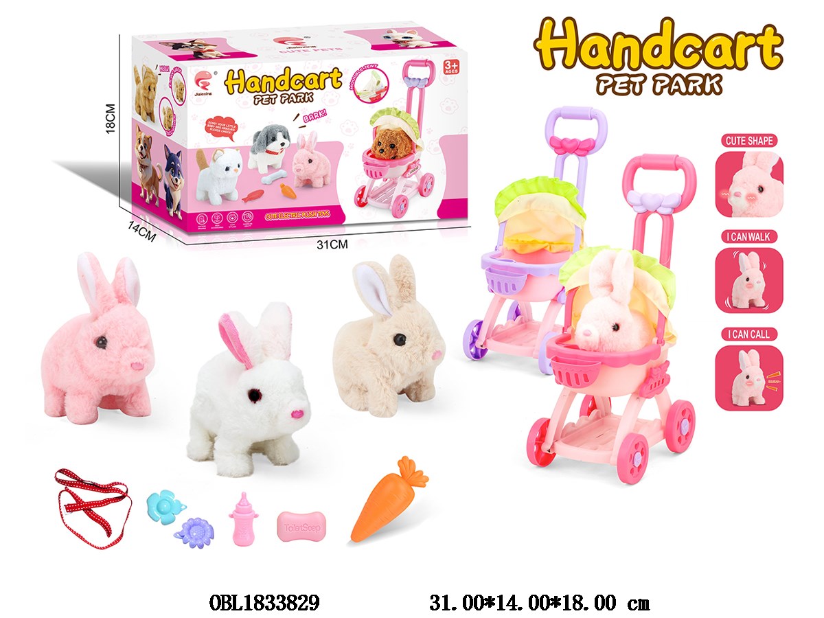 Electric walking cute rabbit cart set with sound 2 * AA, not including electric rabbit 3 mixed carts 2 color mixed carts