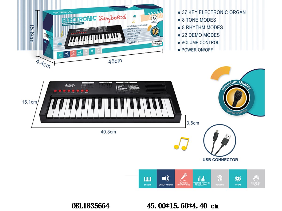 37 key multifunctional electronic keyboard with microphone TYPEC connection cable 3 * AA, power not included