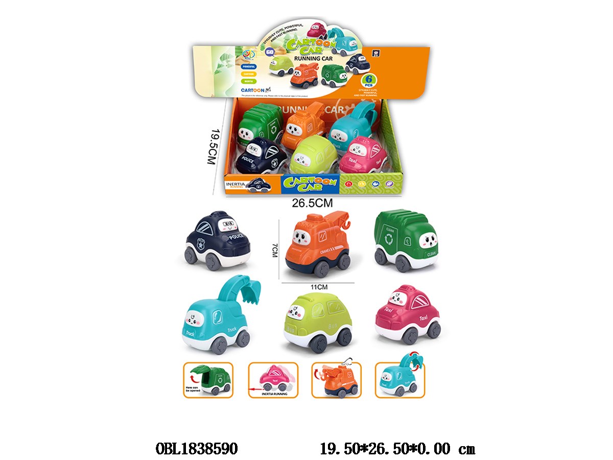 Inertia cartoon car 6 mixed models, 6 pieces per display box