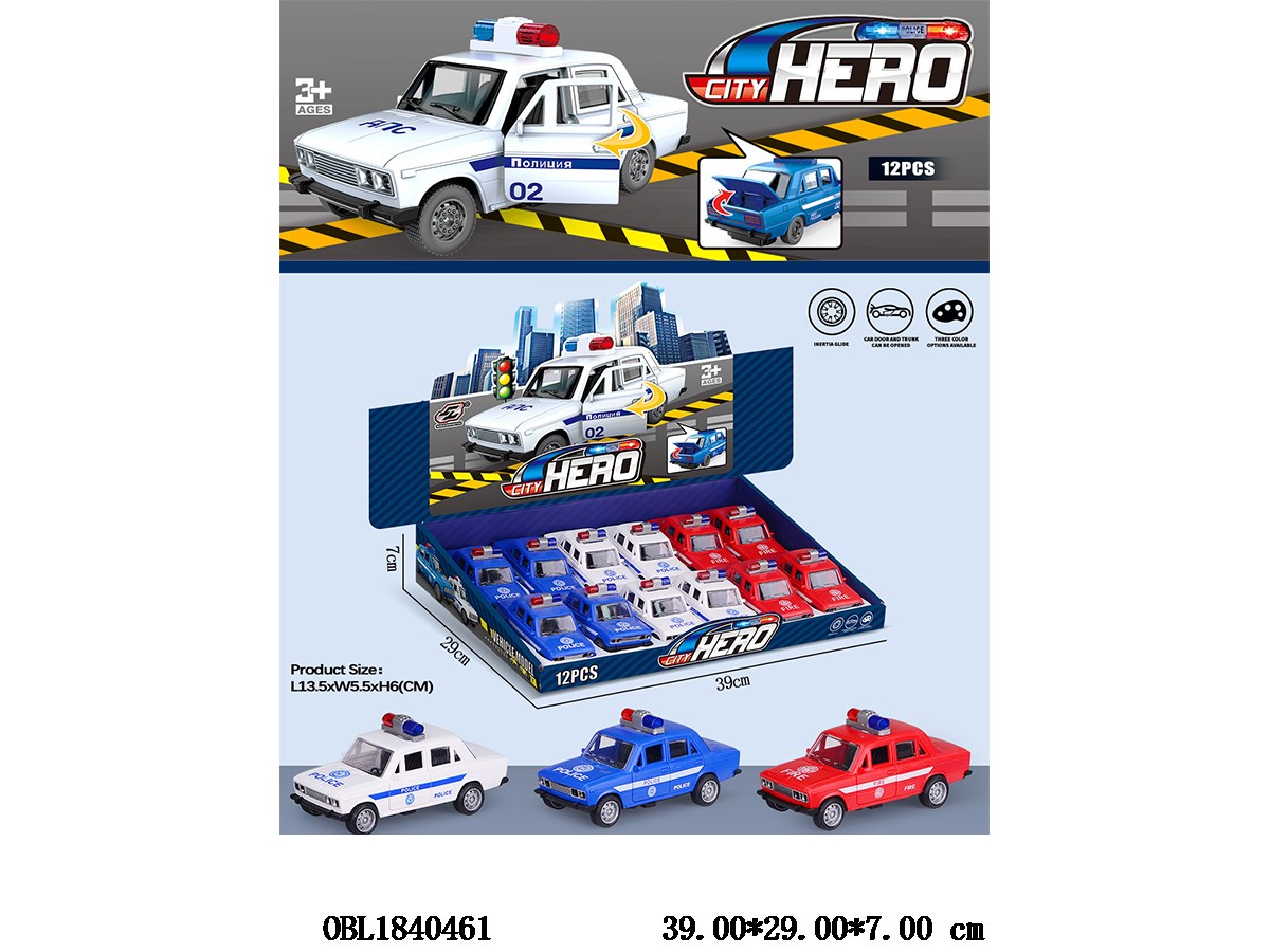 Inertial police car 3-color mixed packaging, 12 pieces per display box