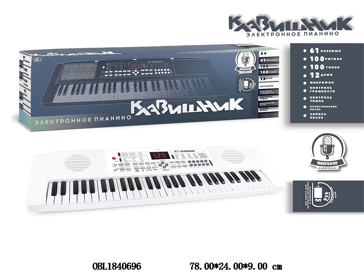 Russian 61 key multifunctional electronic keyboard with digital microphone USB cable 4 * AA, no power included