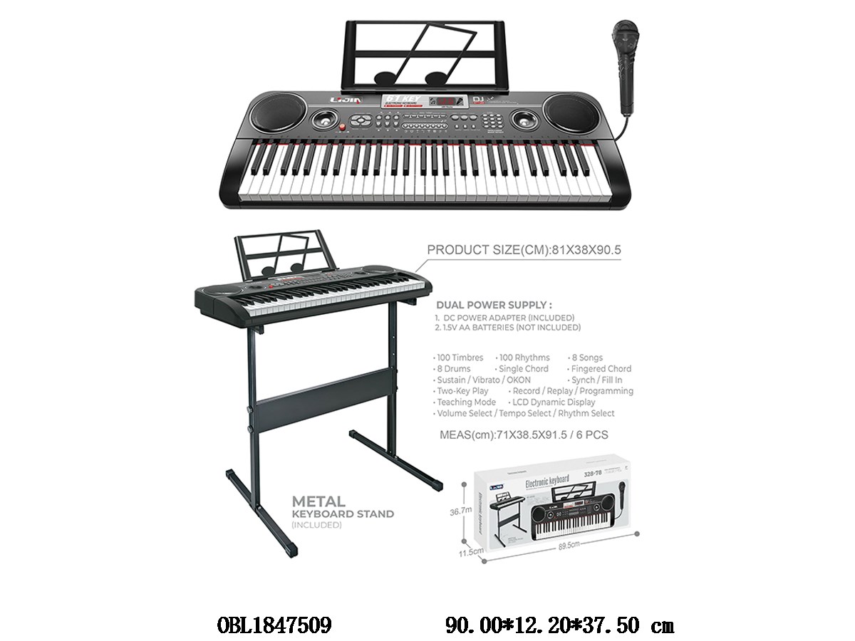 61 key electronic keyboard with stand/microphone 6 * AA, power not included