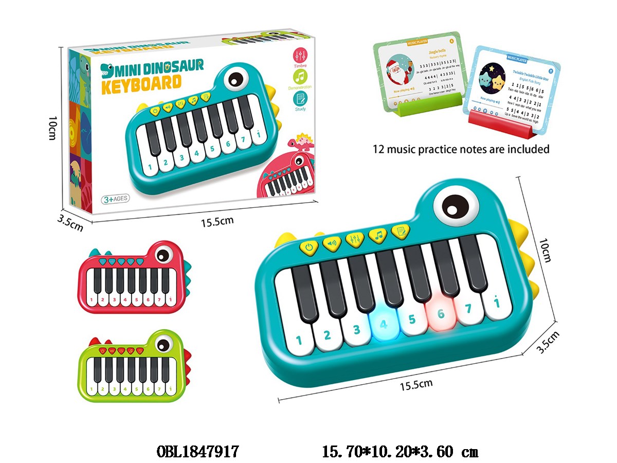 15 key pocket dinosaur electronic keyboard with lighting, music, 3 * AA, no power included, 3 colors mixed