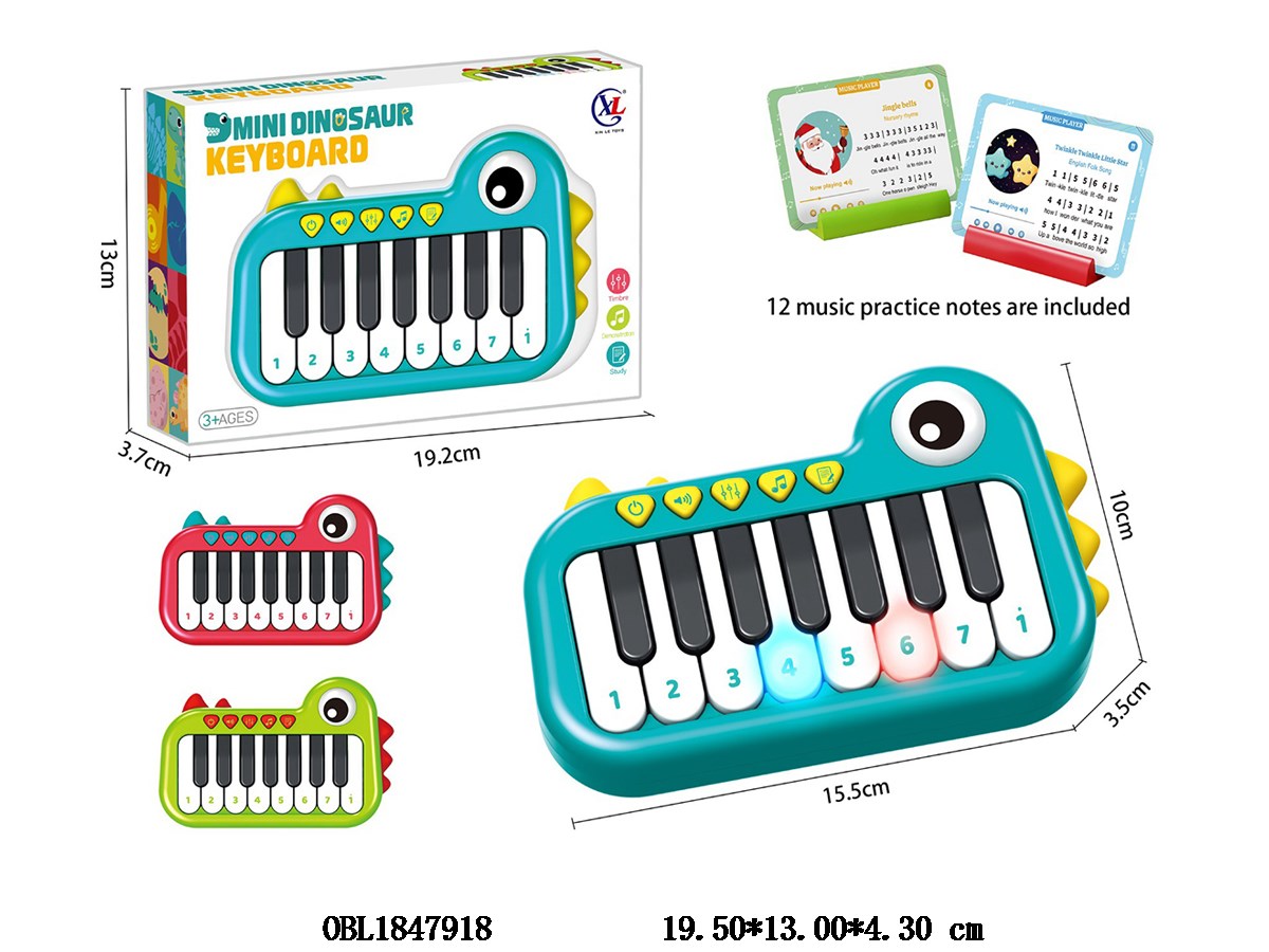 15 key pocket dinosaur electronic keyboard with lighting, music, 3 * AA, no power included, 3 colors mixed