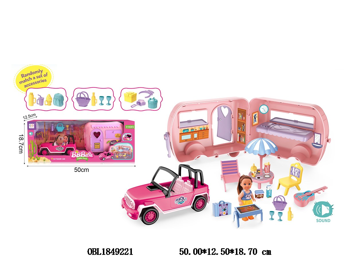 Home > Free Wheel Car > Sliding camping car set with 4.5-inch solid body Barbie with sound, 3 * AG13 package with electricity