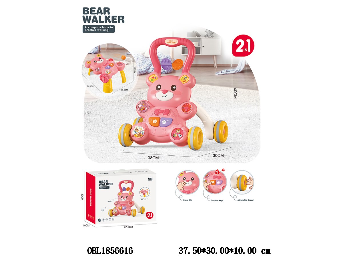 2-in-1 baby walker with lights, music, 2 * AA, no electricity included