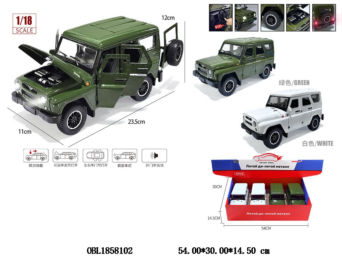 Home > Die - Cast > Russian version 1:18 alloy regenerative car with lighting, music, 3 * AG13, electric package, can open door, 2 colors mixed, 4 pieces, 1 display box