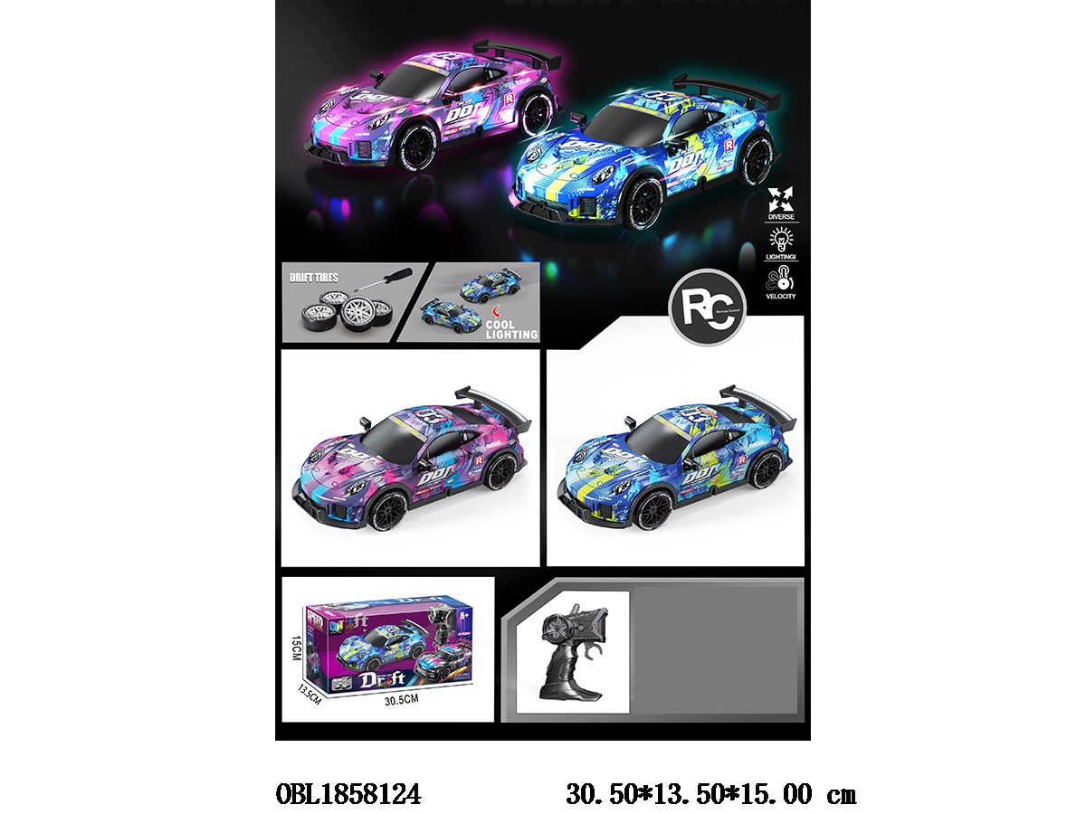 Home > R/C Car > 1: 20 five way four-wheel drive high-speed drift remote control car with lights and USB cable, 3.7V body with power included remote control 2 * AA without power, 2.4G frequency, 2-color mixed design