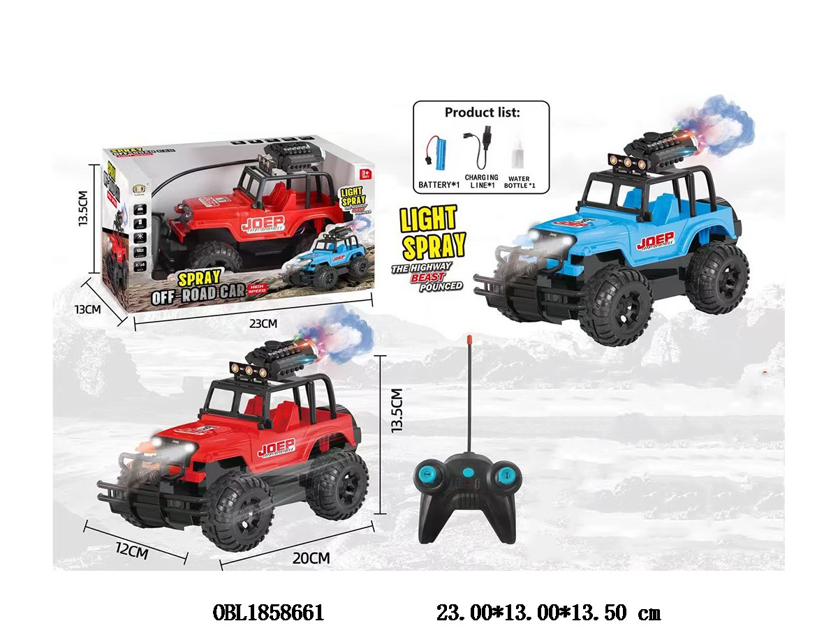Remote control off-road vehicle with light, spray, USB cable, 3.7v body, lithium battery pack, electric remote control, 2 * AA, no power pack, 2.4G frequency, 3-color mixed pack