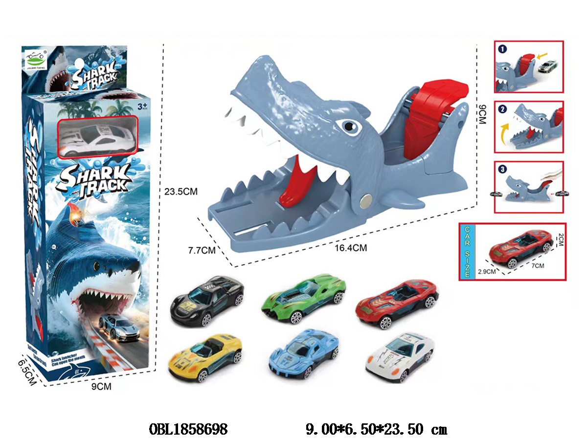 Launch Shark Rail Car Set with 1 Random Sliding Car