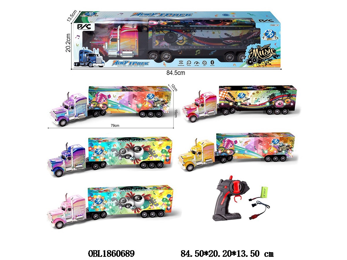 Remote control truck with lights, Bluetooth and USB cable, body 7.4vV lithium battery included remote control 2 * AA without power, 2.4G frequency, 5 colors mixed