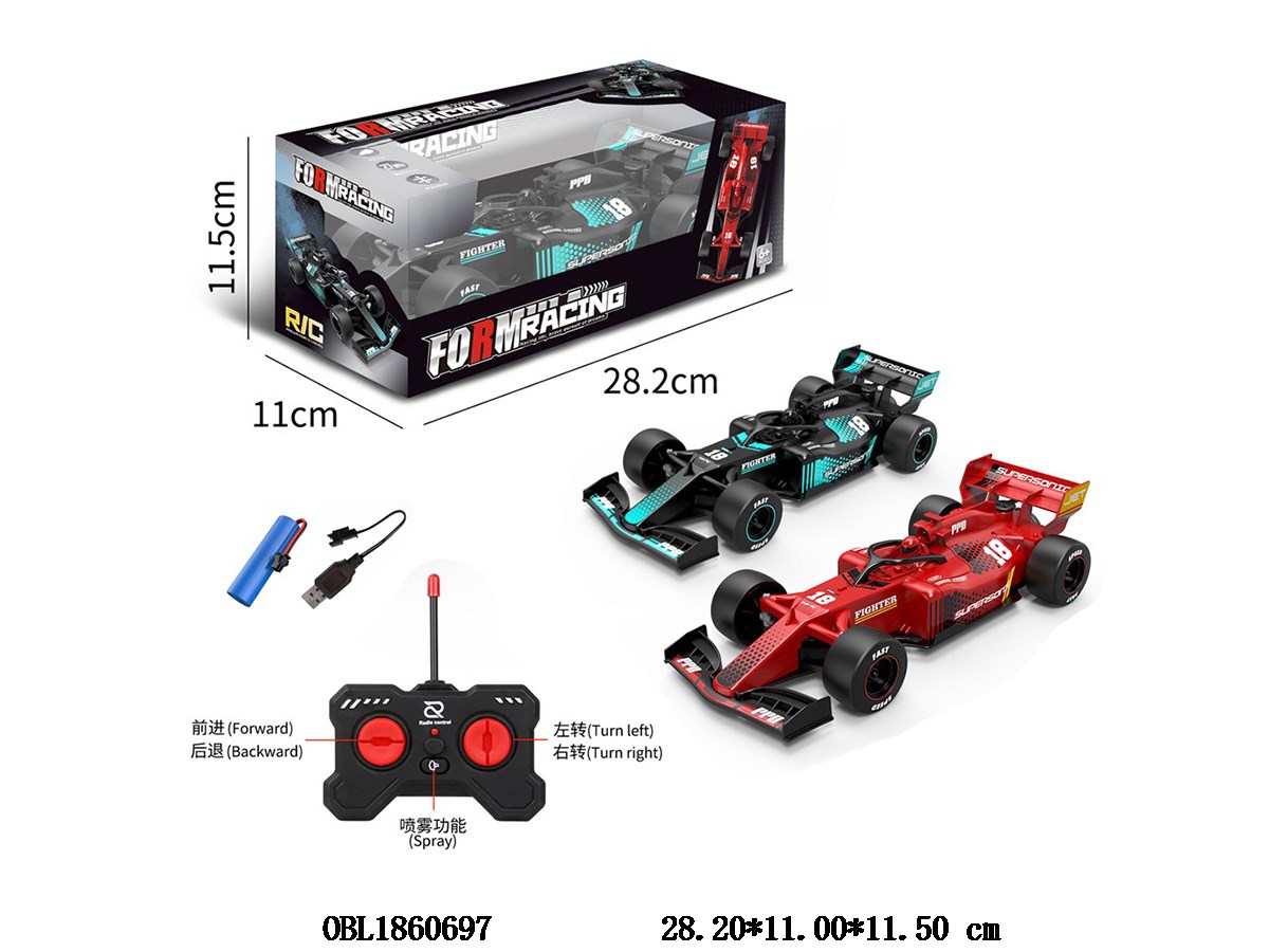 1: 18 remote control racing car with light spray, USB cable, body 3.7v lithium battery pack, electric remote control, 2 * AA, no power pack, 40 frequency, 2-color mixed pack