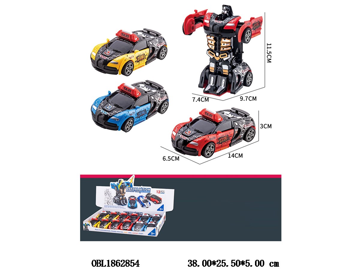 Inertial collision deformation car 3-color mixed packaging, 12 pieces per display box
