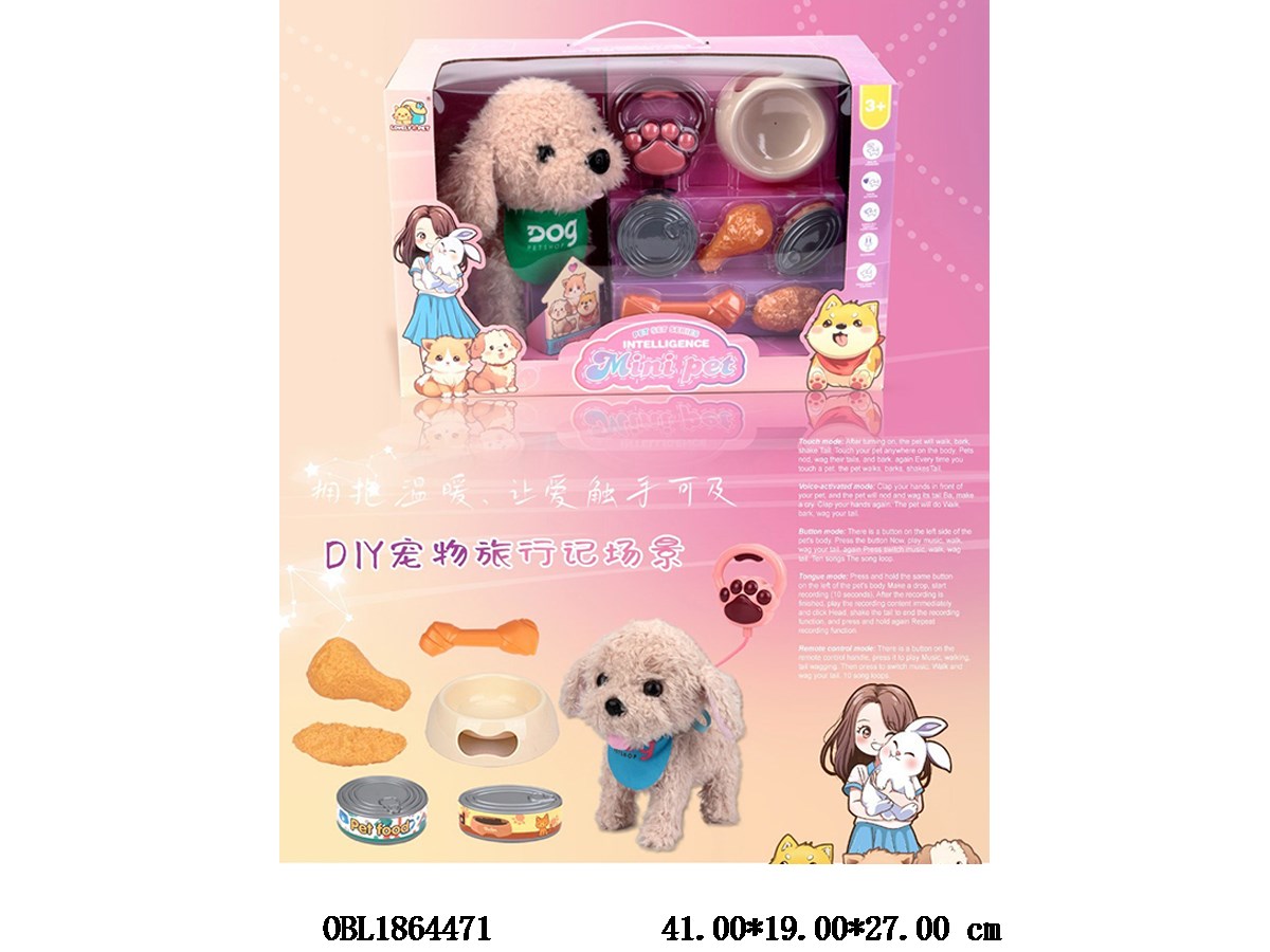 Intelligent wire controlled leash dog set with music, tongue control, voice control, 3 * AA, not included, electric hair cover, removable and washable