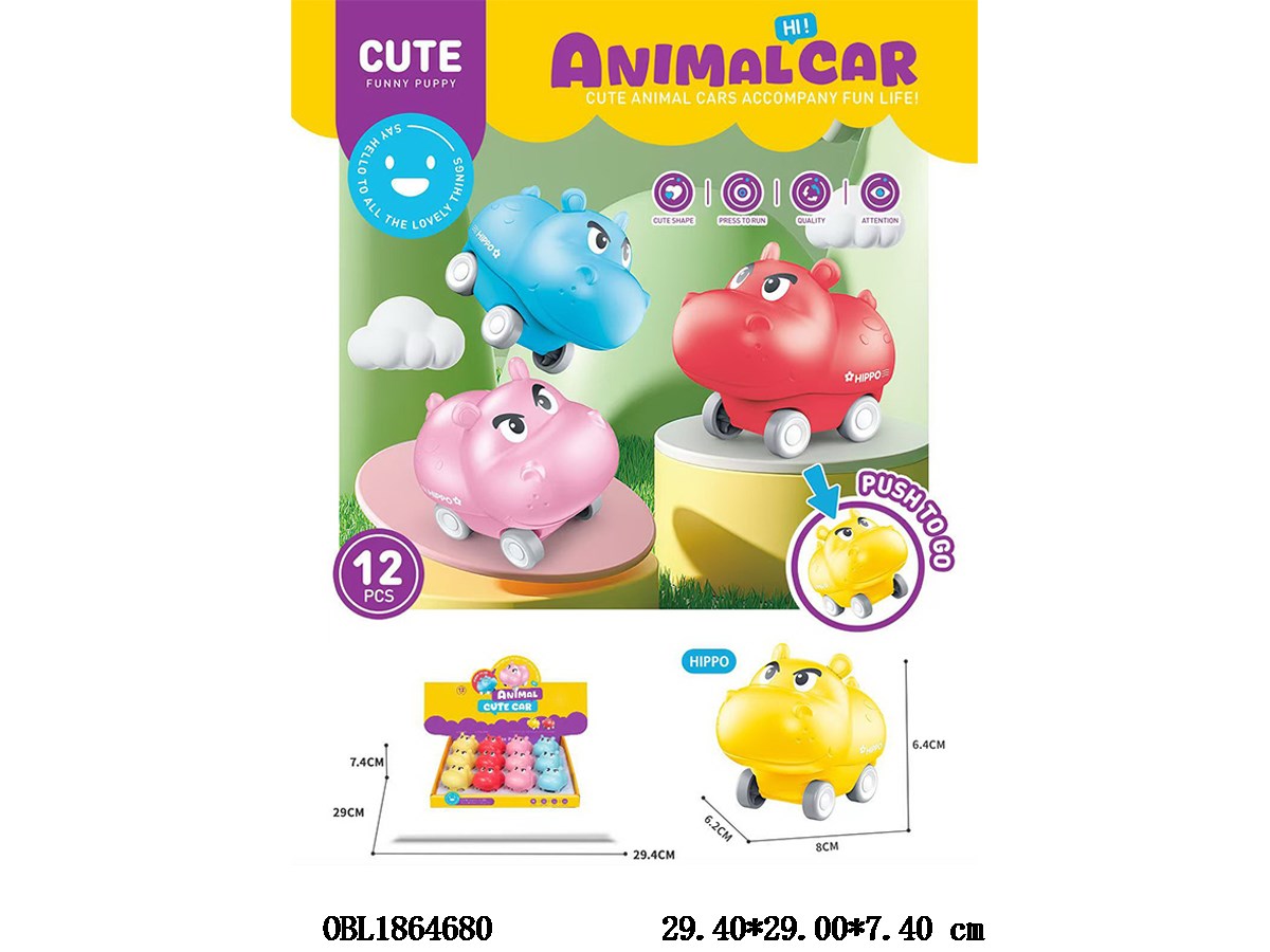 Press hippopotamus 4-color mixed packaging, 12 pieces in 1 display box