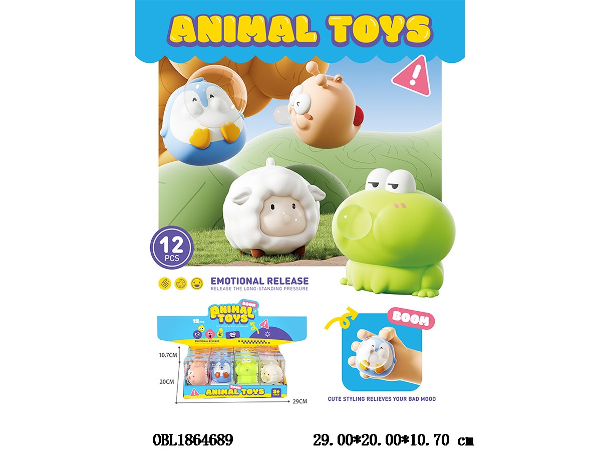 Decompression Slow Rebound Bubble Blowing Animal 4 Mixed Pack 12 Boxes 1 Display Box
