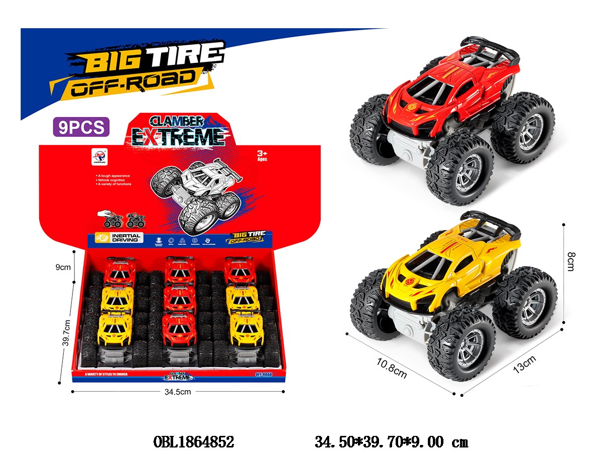 Alloy inertia car 2-color mixed packaging, 9 pieces per display box