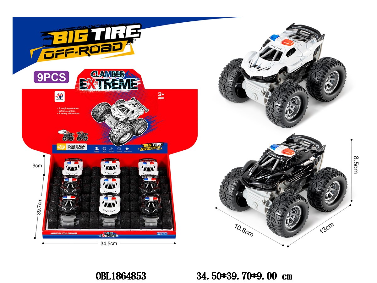 Alloy inertia police car 2-color mixed packaging, 9 pieces per display box
