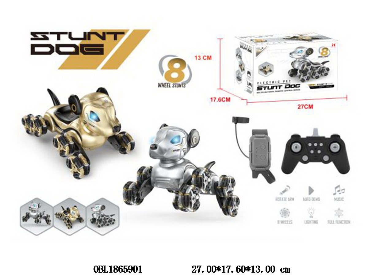Home > R/C Animals > Dual remote control stunt mechanical dog with lighting and music, equipped with USB cable, main body 3.7V lithium battery with power included remote control 2 * AA non power included watch remote control 2 * AAA non power included 2-color hybrid