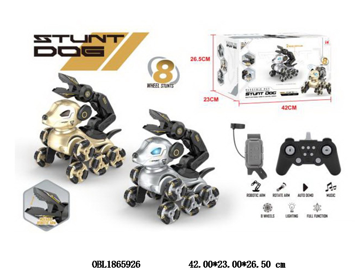 Dual remote control stunt mechanical dog with lights, music, clip on device, USB cable body, 7.4V lithium battery included remote control, 2 * AA non included watch remote control, 2 * AAA non included, 2-color mixed design