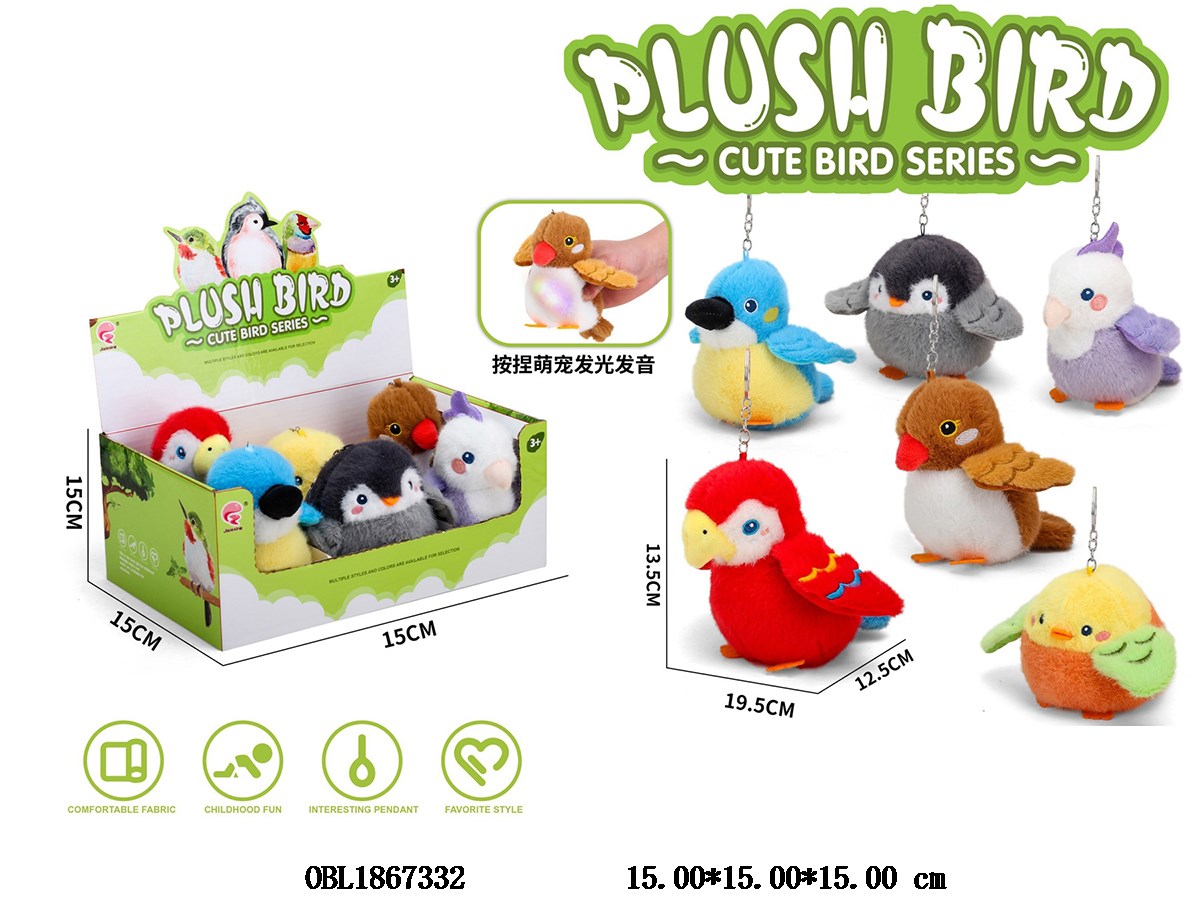 Pinch plush cute pet bird with light and sound, 6 mixed packages, 6 pieces, 1 display box